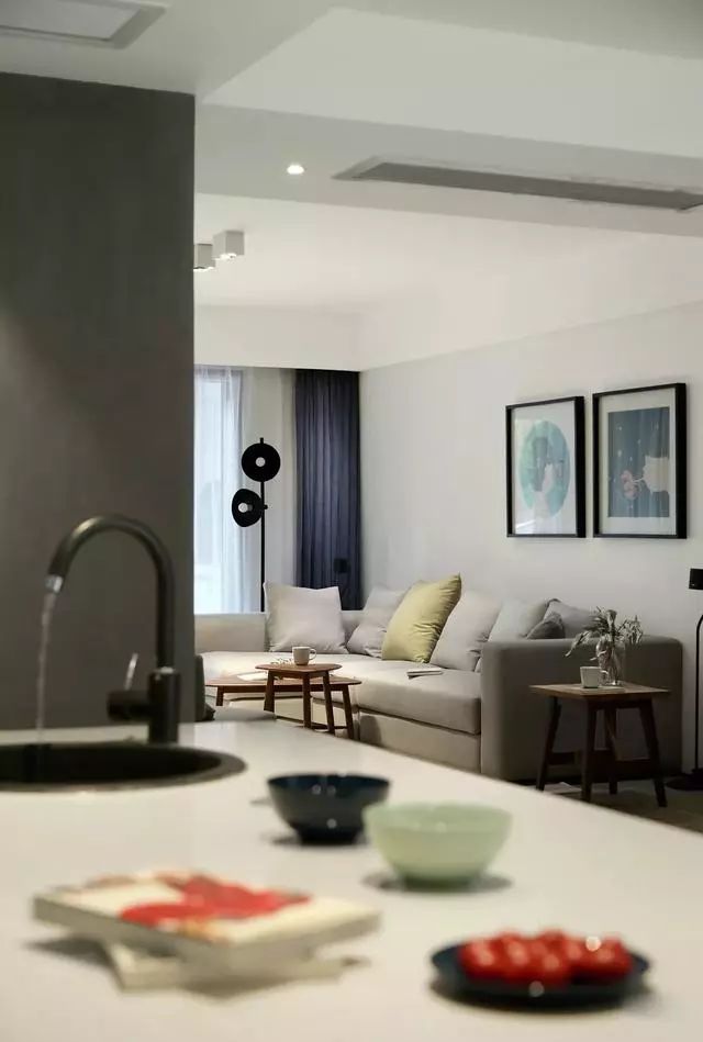 浅灰复古调的地面,在这个清新雅致的空间里,显得更加的年轻有格调。